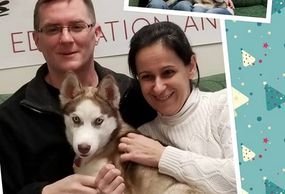 Once living life on a chain, Oriana now has a Husky savvy Dad and a warm bed to call her own.